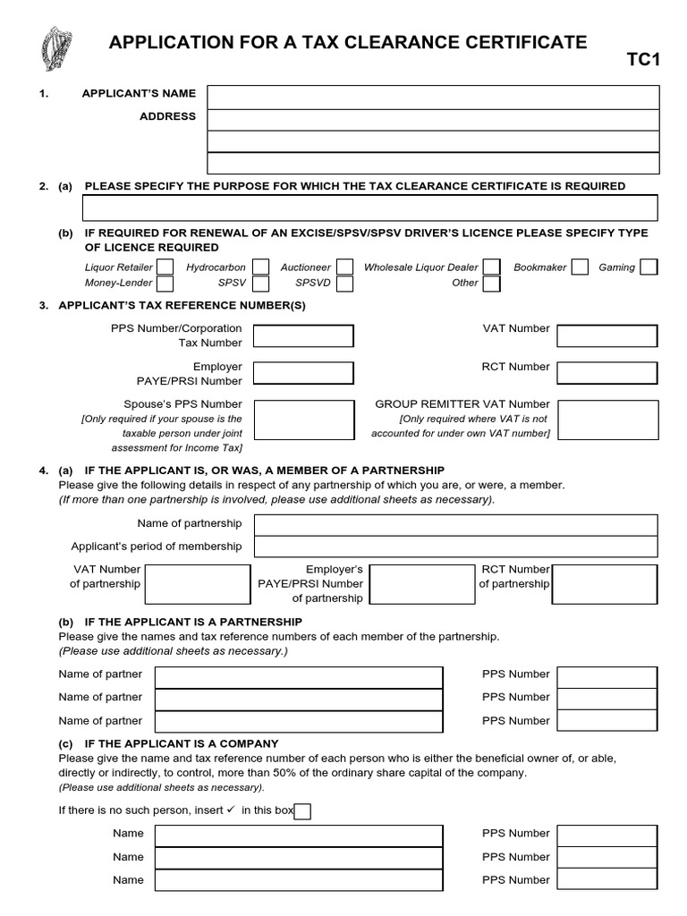 Number and box number city or town 4 county state zip code. A tax clearance certificate simply states that all tax liabilities are satisfied—specifically when it comes to the estate of a deceased person or a corporation. Rules for classification of goods. The list of documents to apply for a tax residency. Tax clearance to participate in the criminal justice legal aid scheme if you are applying for tax clearance in your own name and you are an employer's paye/prsi number.