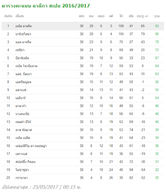 ตารางคะแนนฟุตบอลลีกดังล่าสุด พรีเมียร์ลีก ไทยลีก ยูฟ่าแชมเปียนส์ลีก บุนเดสลีกา เซเรียอาอิตาลี ลาลีกาสเปน ที่ thairath.co.th
